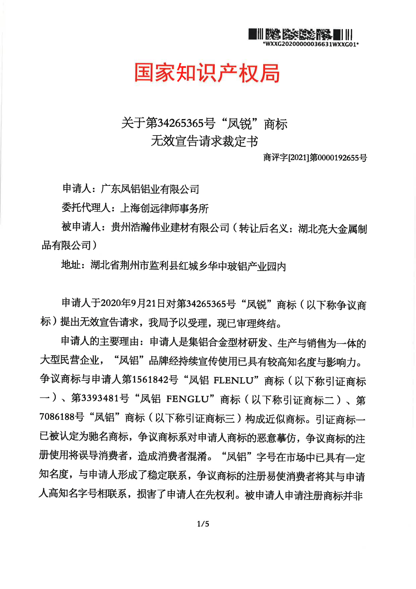 济宁辉知队 | 国家知识产权局:“凤锐”商标无效