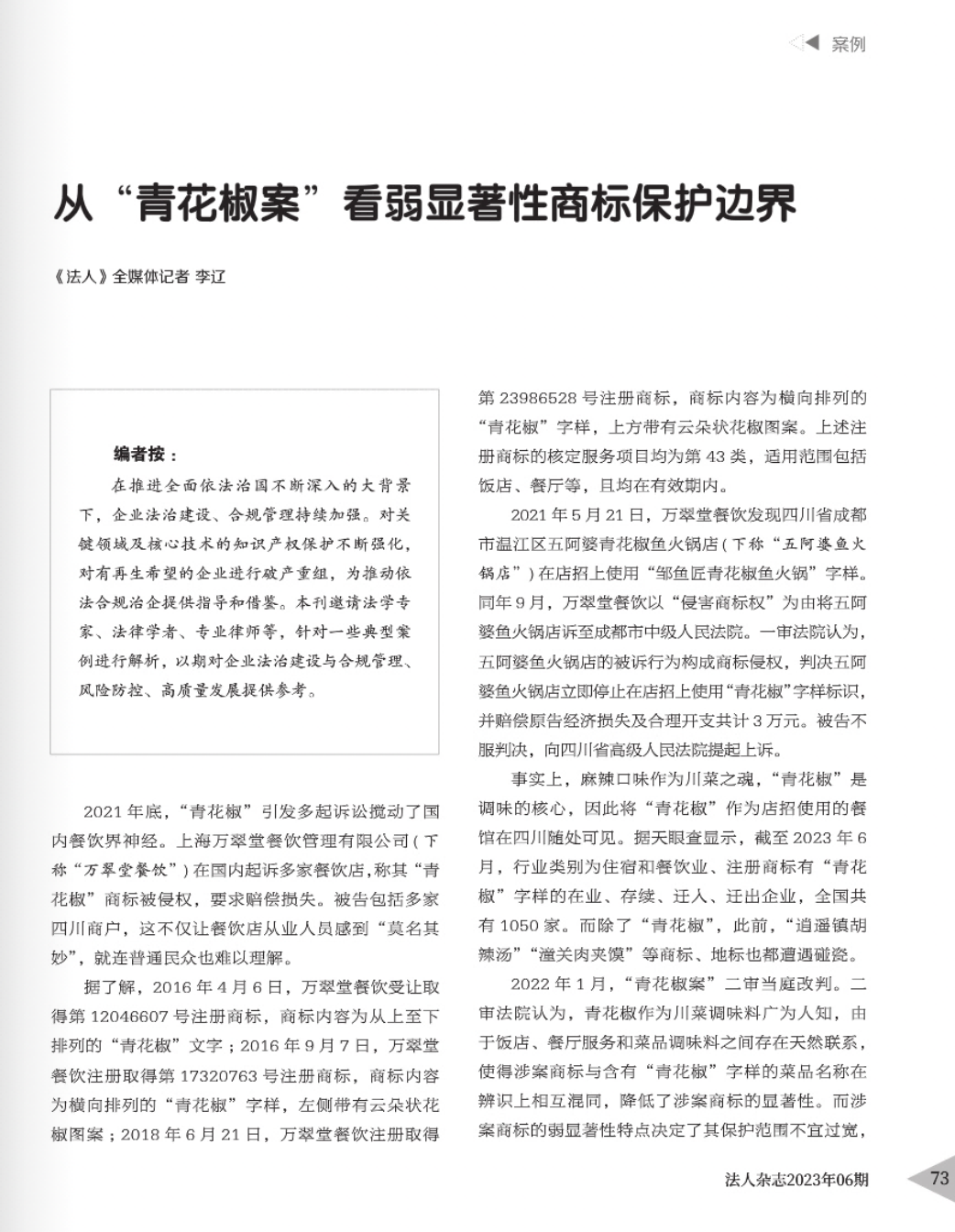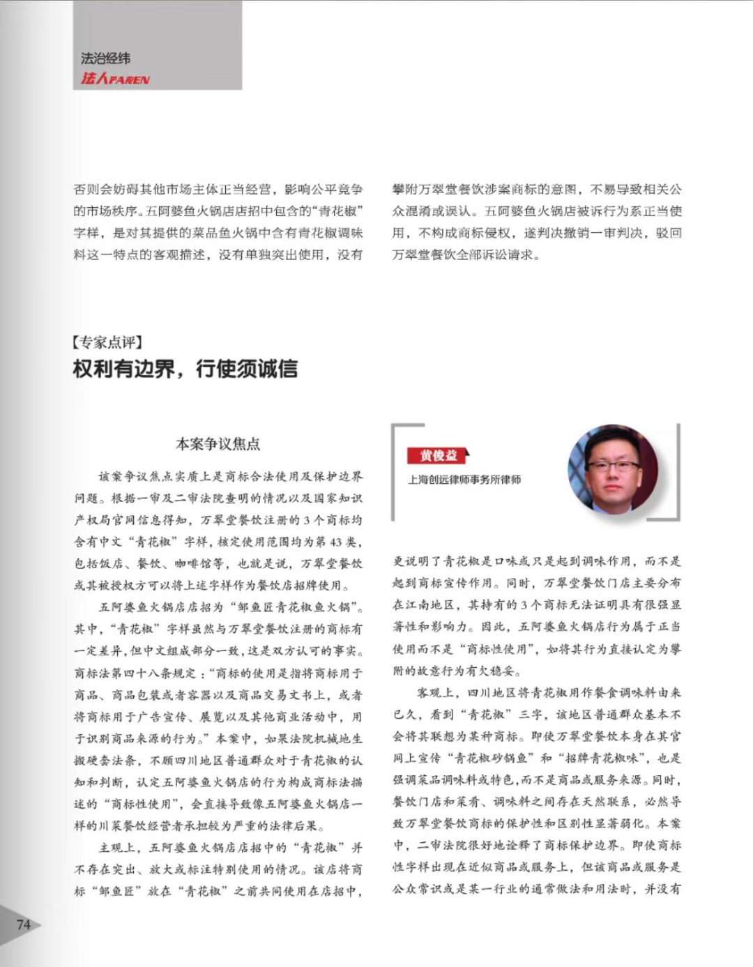 济宁辉知简讯 | 辉知队黄俊益律师应“法治日报”旗下杂志邀请,就“青花椒”案发表专家点评