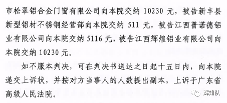 济宁凤铝系列维权案:诉辉煌公司等四被告,法院判赔250余万