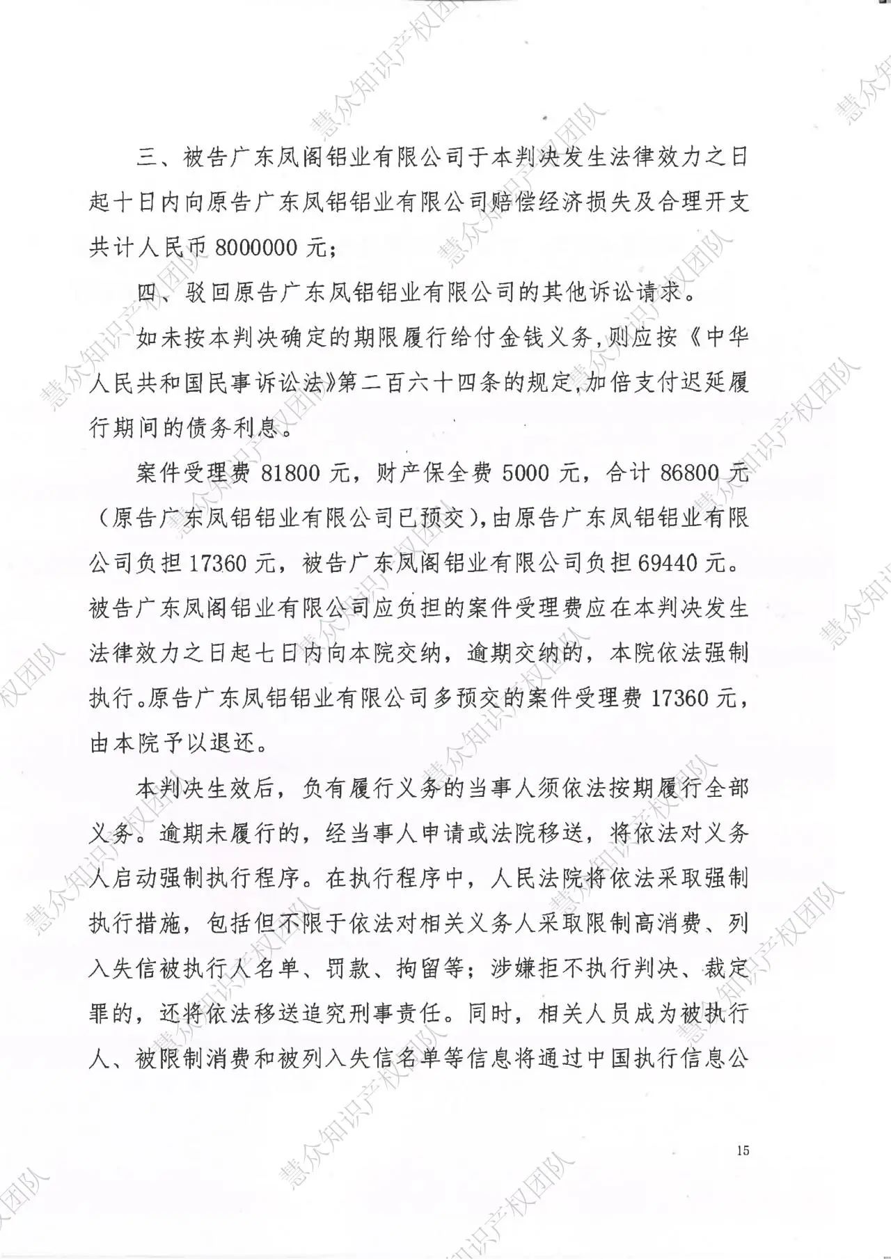 济宁判赔800万!辉知队代理“凤铝”商标维权案胜诉